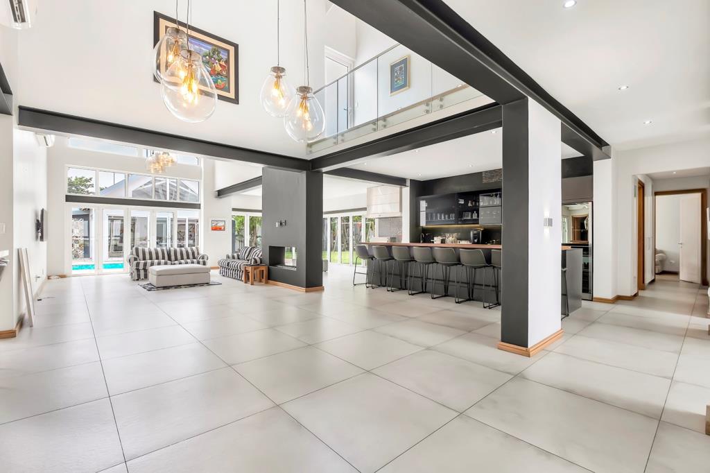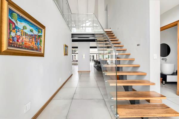 Experience state-of-the-art living in this expansive, technology-driven home designed for comfort and entertainment. A striking triple-volume entrance leads to an open-plan layout, featuring a sophisticated bar and sushi dining area, an indoor chefs barbecue with professional extraction, and a formal dining space. The kitchen is equipped with top-of-the-line Siemens appliances, a central island, and a separate scullery with laundry facilities.