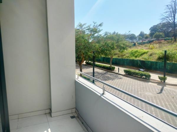 A well-appointed kitchen boasting electric appliances, including a stove, oven, and extractor. The spacious lounge area exudes comfort, leading to a private balcony, offering captivating views and direct access to the picturesque Braamfontein Spruit.