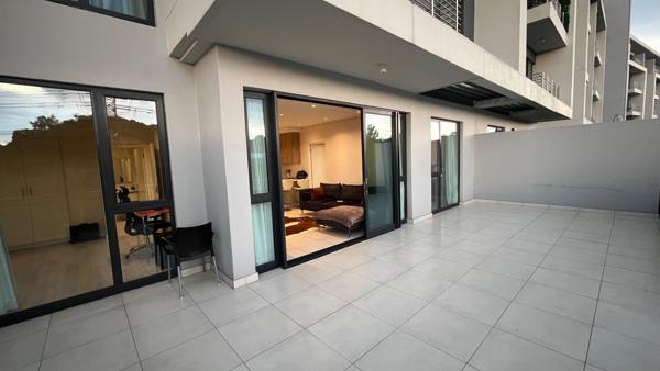 The living area opens seamlessly onto a large west-facing terrace, offering tranquil views of the Braamfontein Spruit Trail greenbelt an inviting extension of your living space, perfect for sunset evenings or morning coffee.