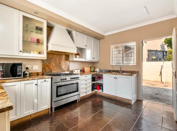 This recently renovated property is well-maintained and boasts beautiful flowing gardens and lawn with an automatic water sprinkler system, and patio suite for outdoor enjoyment. The kitchen has a large gas hob and electric oven with built-in cupboards and corridor pantry storage to accommodate ample groceries. The kitchen, main lounge, dining room and bathroom floors are fully tiled with Natural Stone, whilst the rest of the house has wooden flooring. All windows and doors are secured with burglar bars.