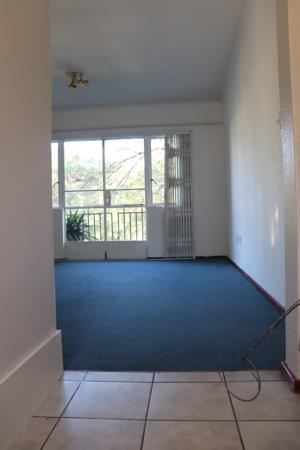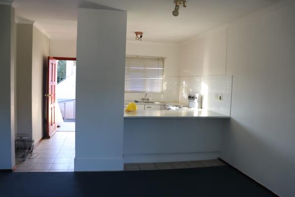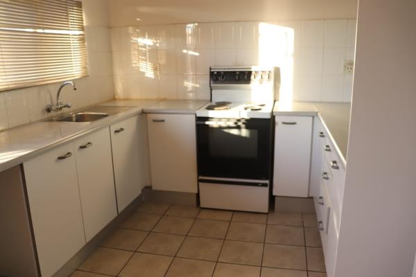 Spacious kitchen and open plan lounge area, leading onto the balcony overlooking a luscious grass area of the complex.