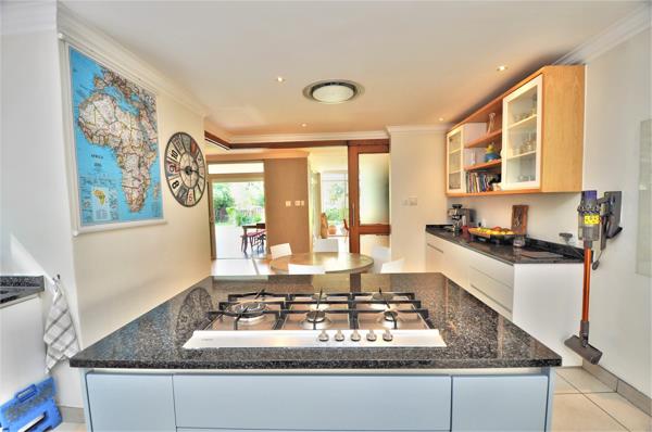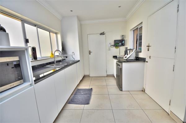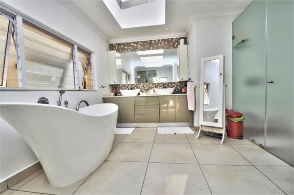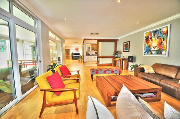 Large family home modernised with pvc double glazed windows, central heating, solar panels and back up water. The home offers easy living all on one floor. Enjoy family time in the open plan generous living dining and entertainment area. A beautiful deck overlooking the landscaped garden provides space and luxury. The family sleeps in one area of the house with the shutter door. An extra flatlet is attached, offering 2 bedrooms and a lounge that can be used as an office. Extra features include: laundry area, 2 staff quarters, and extra parking, aircon and central air, and safety shutters in all rooms.
