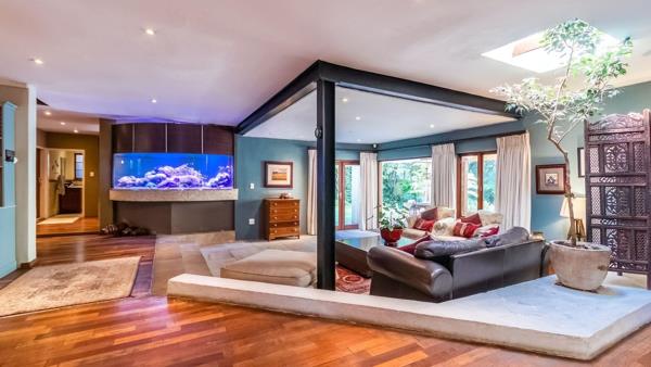 From the lounge, large doors open onto a patio that overlooks the swimming pool, alfresco dining area, and an idyllic stream flowing through the private park. On the left side of the entrance hall, a semi-enclosed study overlooks an impressive, colorful aquarium, providing an inspiring workspace. The study, if required, can be changed to 5th bedroom, as a bathroom with shower is attached to it.