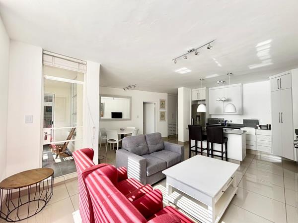 Step into a stylish open-plan living and dining area, complemented by tasteful, modern furnishings. The well-equipped kitchen features quality appliances and ample storage. The spacious main bedroom boasts a comfortable bed and generous built-in cupboards, while the additional half-bedroom is ideal for a study, guest room, or dressing area.