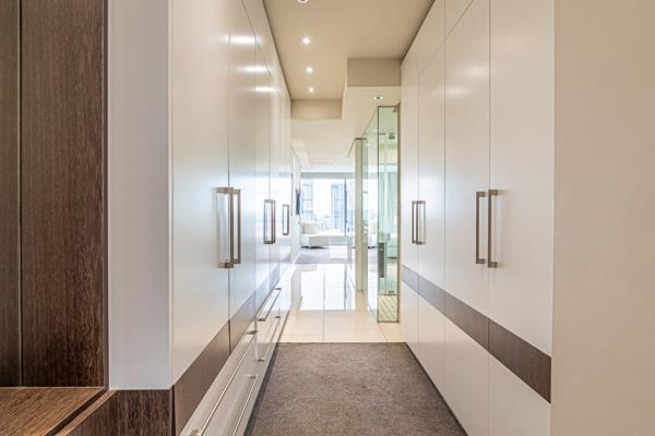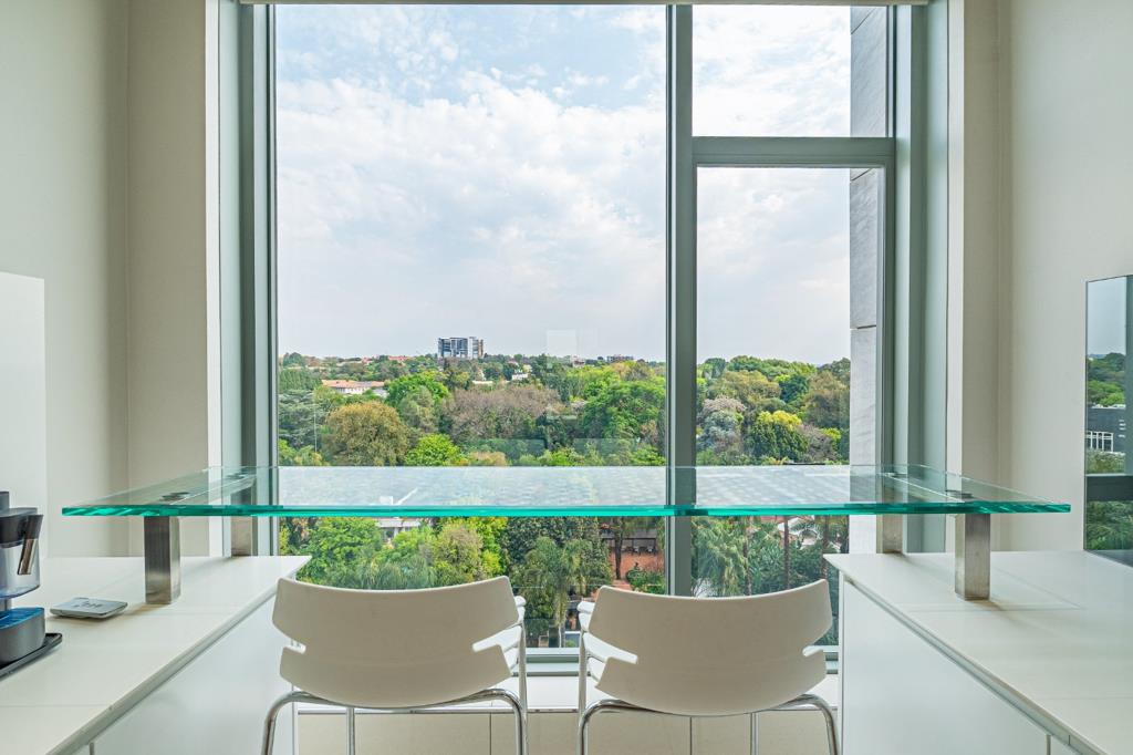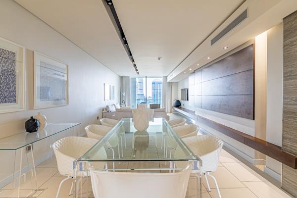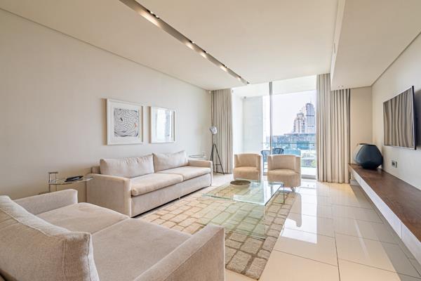 This 163sqm fully furnished 2 bed 2.5 bath apartment is generously sized and provides the ultimate in luxury apartment living in the heart of Sandhurst, with views overlooking Sandton on the one side and beautiful Sandhurst on the other. Beautifully furnished and designed to an exceptionally high standard, crafted to reflect residents expectations of uncompromising quality and originality. The kitchen is ultra modern with white high gloss built-in cupboards, caesarstone counter tops, a glass breakfast bar with views of Sandhurst and fitted with integrated Smeg appliances. The lounge and dining area is capacious in size and leads out onto a sizable balcony offering scenic views over the Sandton CBD. The unit is air-conditioned and comprises of 2 spacious bedrooms and the main bedroom will leave you in amazement with a walk-in closet with white wood built-in cupboards and a complete bathroom en-suite tiled to the ceiling and with glass doors. The second bedroom is also en-suite and has beautiful Sandhurst views.