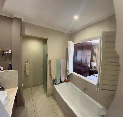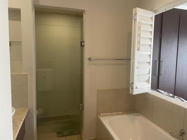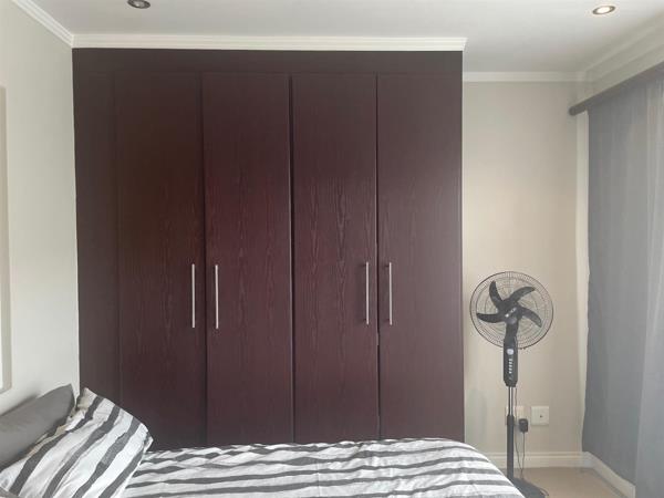 Two spacious, carpeted bedrooms with ample built-in cupboard space Main bedroom with en-suite bathroom featuring a bathtub, shower, and basin