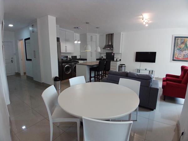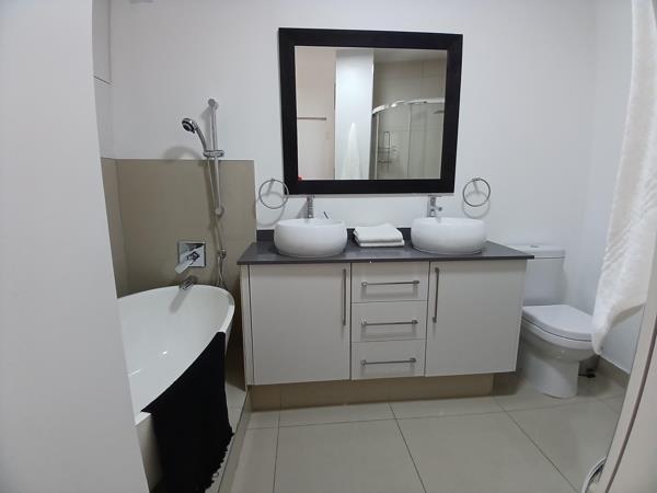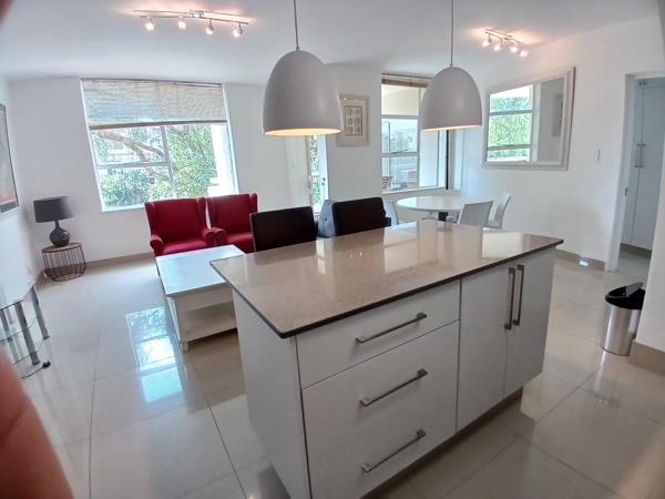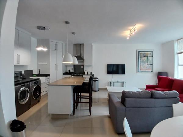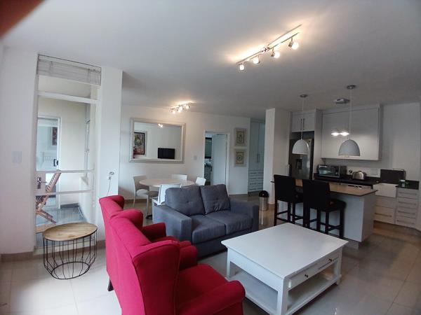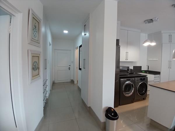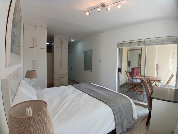 The apartment offers, neatly tiled floors, 2 linen cabinets, guest bathroom, 2 bedrooms with ample cupboard space and a balcony that can be accessed from the main bedroom and lounge. The main bedroom has a full en-suite (shower and bathtub). The fully equipped kitchen has a gas stove with breakfast counter, washing machine and plenty of cupboard space.