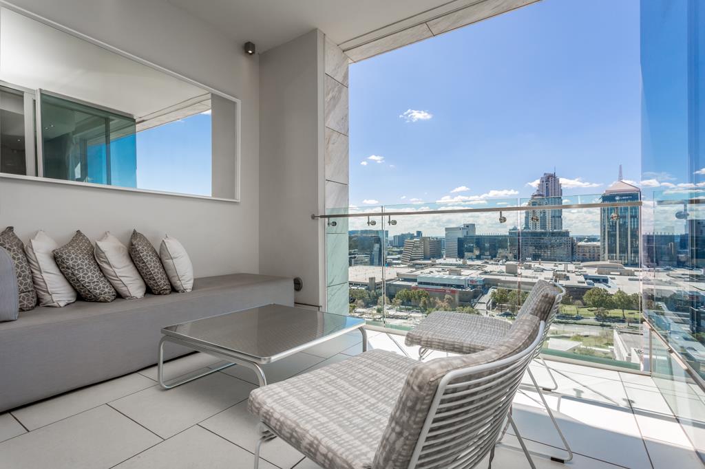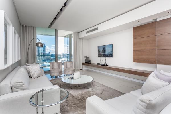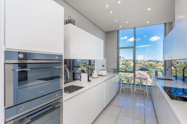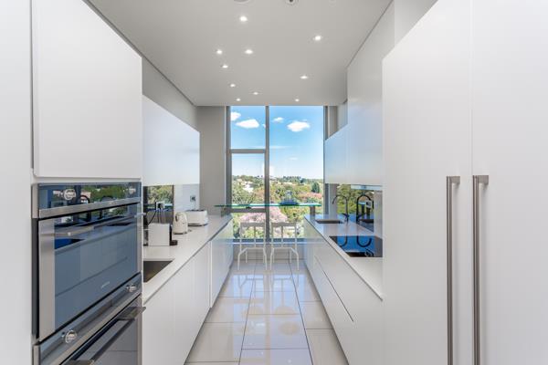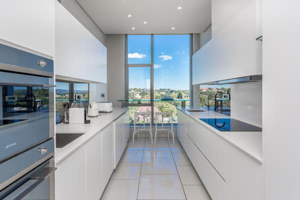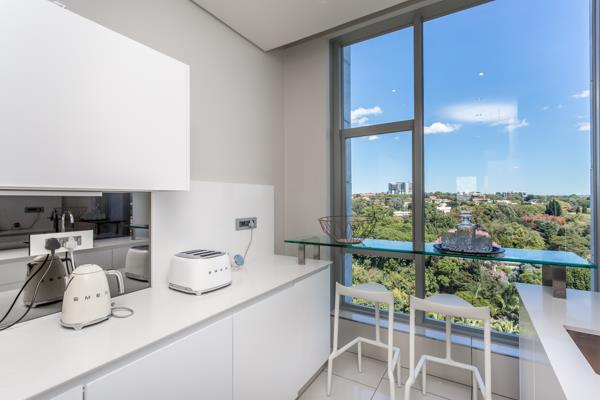 Expect a slick streamlined kitchen with top of the range integrated appliances seamlessly flowing into the gorgeous open-plan living areas flooded in light leading on to the wonderful private terrace with sweeping views across the Sandton skyline.