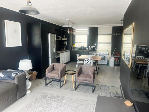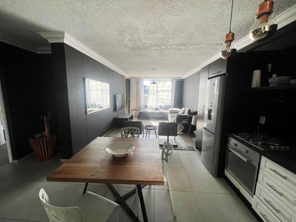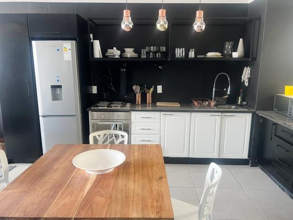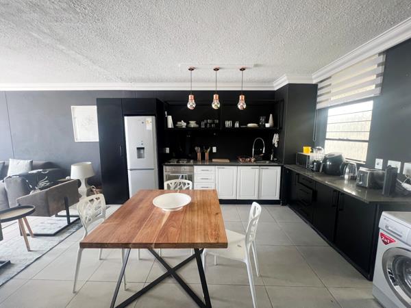 Open-plan kitchen with gas hob and appliances. Dining room and lounge leading onto a covered patio that overlooks the Gardens.