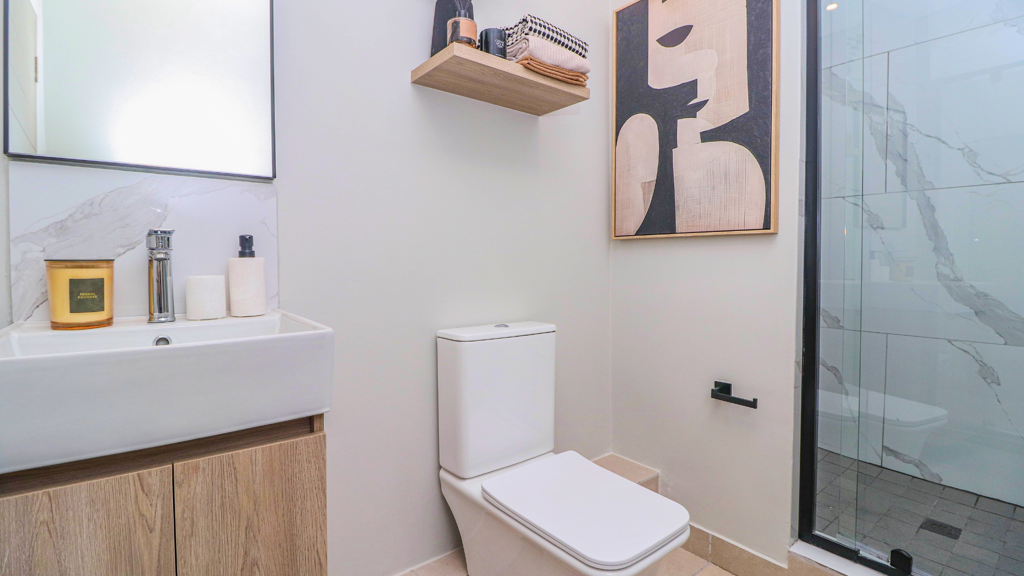 Immaculate bathrooms, spacious showers, and modern fittings.