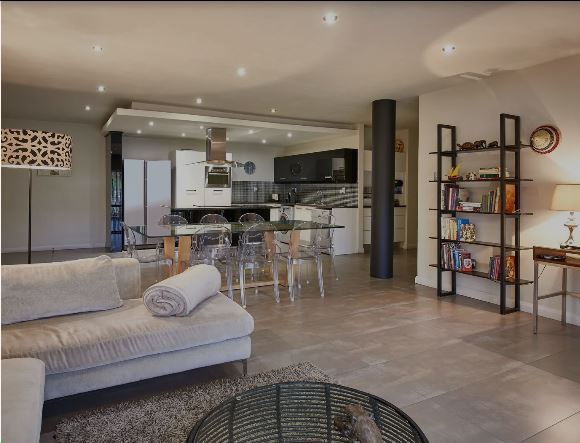 The spacious open plan living area is tastefully furnished and includes a large lounge area with flat screen TV, dining area and fully equipped kitchen. The master bedroom also has a TV(ovhd only)