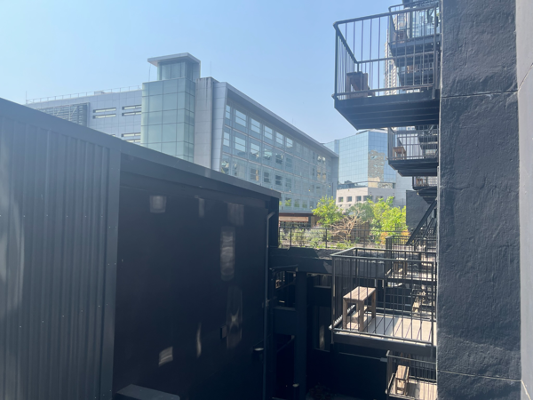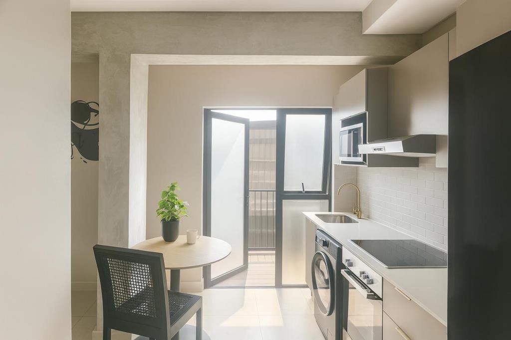 The bedroom is a comfy retreat with neutral tones, plenty of natural light, and an air conditioning unit to keep you cool. The bathroom is equally chic, featuring a wall-mounted vanity, stylish gold fixtures, and a subway tile backsplash for that contemporary feel. This apartment is designed for a lock-up-and-go lifestyle, making it ideal for a busy professional or anyone who appreciates efficiency and style.