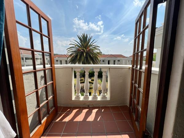 - The bedroom leads onto an uncovered patio overlooking the complex.