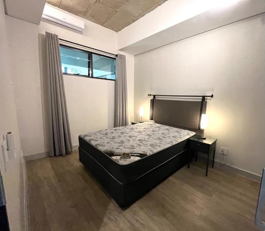 Bedroom can fit a queen sized bed and has ample cupboards with an air con unit installed.