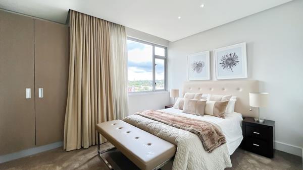 The unit consists of a large open lounge, kitchen, and dining area the balcony overlooking the Mushroom Park where you can enjoy a beautiful Johannesburg sunset. The large full bathroom with double sinks, a large bath, and a shower will exceed even the most discerning tastes. The unit has air-conditioning and underfloor heating throughout.