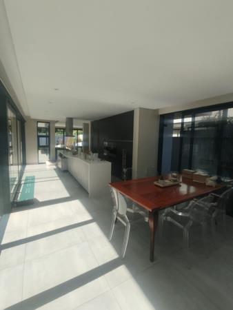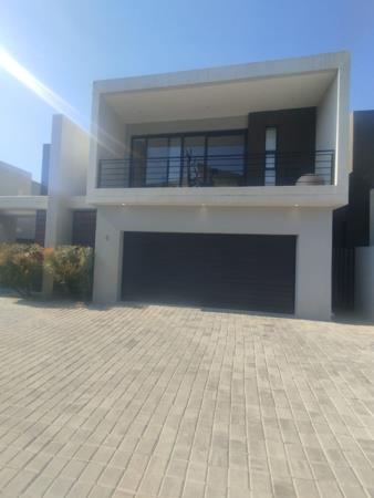 Discover this modern 4-bedroom, 4.5-bathroom residence available to rent in the sought-after Sandown suburb of Sandton, South Africa. Spanning 410 sqm on a 657 sqm erf, this contemporary home features an open-plan design with high ceilings and abundant natural light. The sleek, minimalist kitchen boasts modest cabinetry, a large island with an integrated induction hob, and integrated double ovens. Three spacious lounges and a dedicated dining room provide ample living space, complemented by a practical laundry or scullery area.
