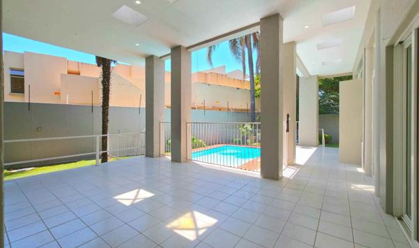 Perfect for entertaining, it features two expansive reception rooms that open seamlessly onto an extended covered patio with a built-in braai, overlooking beautifully manicured gardens and a sparkling swimming pool.