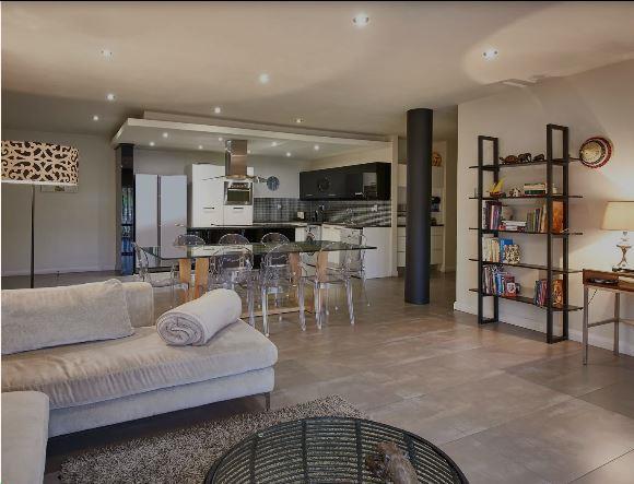 The spacious open plan living area is tastefully furnished and includes a large lounge area with flat screen TV, dining area and fully equipped kitchen. The master bedroom also has a TVovhd only