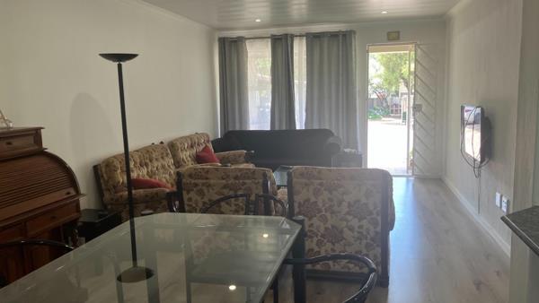 Located within the well-maintained and secure Madison Palms East complex, this fully furnished, ground-floor 2-bedroom apartment offers comfortable and modern living in a quiet, well-managed environment. The apartment features an open-plan living and dining area, seamlessly connected to a fitted kitchen equipped for immediate occupation. The unit has been enhanced with new laminated flooring throughout, complemented by a well-finished ceiling and tasteful mosaic wall finishes, adding a contemporary and well-presented aesthetic.