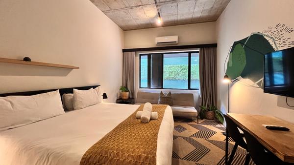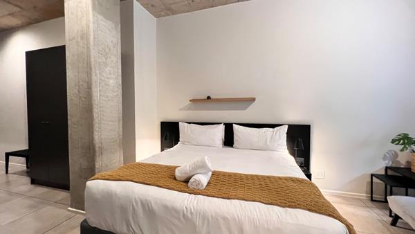 The open-plan layout features a sleek kitchen, lounge area, plush king-size bed with luxury linen and a smart TV to complete the package. Modern bathroom with walk-in shower. Simply unpack and start living this unit is move-in ready. Underground parking.