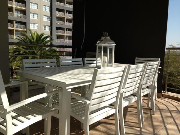 Gorgeous North-Facing Balcony with an 8-seater dining set perfect for entertaining or unwinding after a busy day