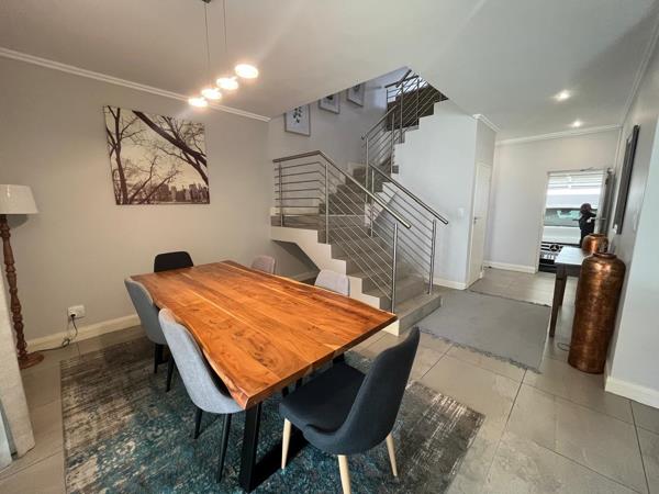 Step into effortless living with this stylish and fully furnished 3-bedroom, 3-bathroom cluster home in one of Sandowns safest and most sought-after gated estates. All bedrooms are en suite and located upstairs, with the master bedroom featuring air-conditioning. A cosy pyjama lounge on the upper level provides the perfect spot for the kids or a relaxed TV nook.