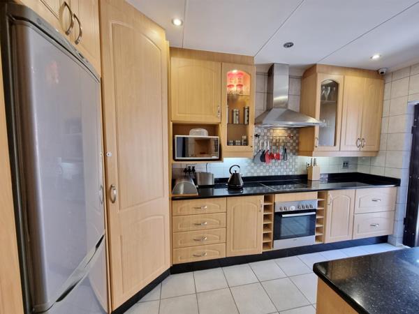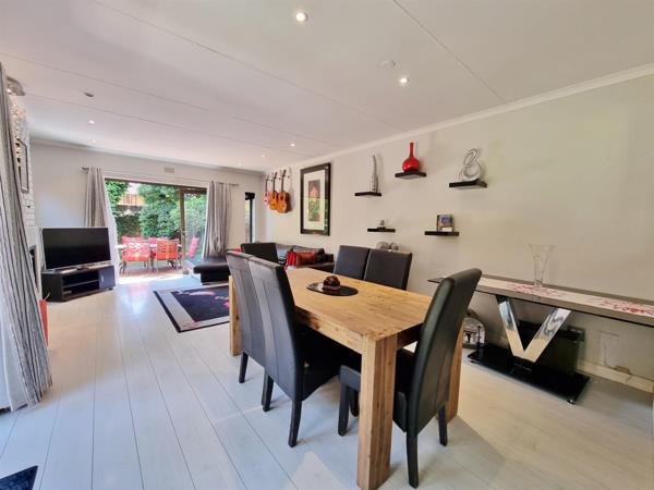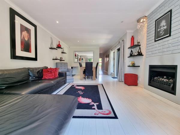 This spacious, secure face-brick corner garden unit offers three well-sized bedrooms and two bathrooms main en suite. The open plan dining and lounge area features a gas fireplace and flows seamlessly through stacking doors onto a paved patio and beautifully maintained garden with solar lighting and an irrigation system.