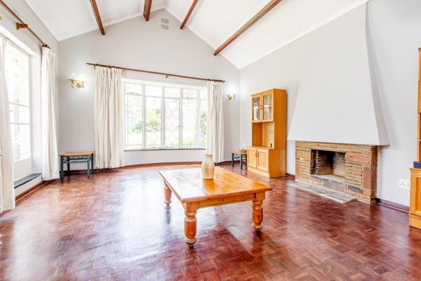 You are welcomed into a reception area that flows into a nostalgic Swiss Parquet living room with a cosy fireplace and a dining room. The living room and dining rooms are fitted with curtains.
