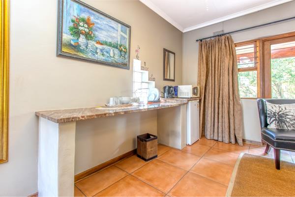 Kitchenette: equipped with a microwave, kettle, bar fridge, crockery and cutlery