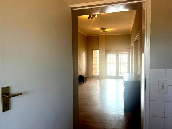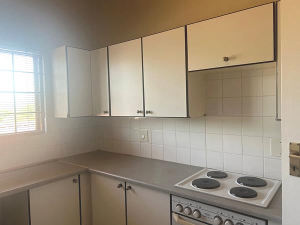 The kitchen has ample cupboard space and space for one under-counter appliance.