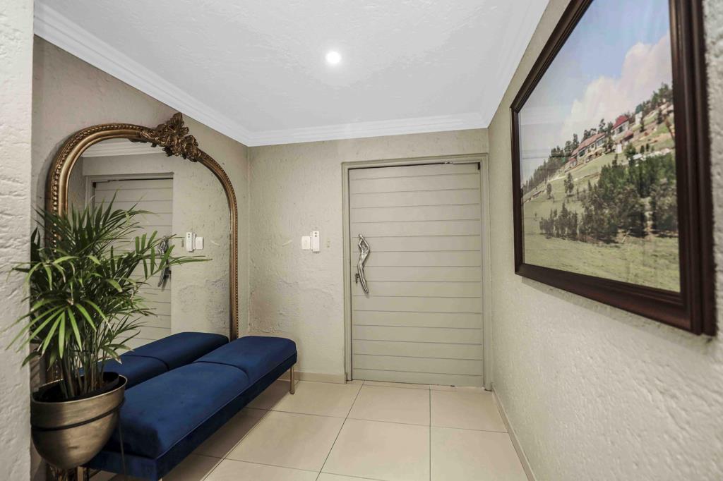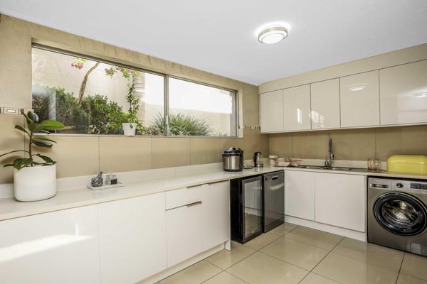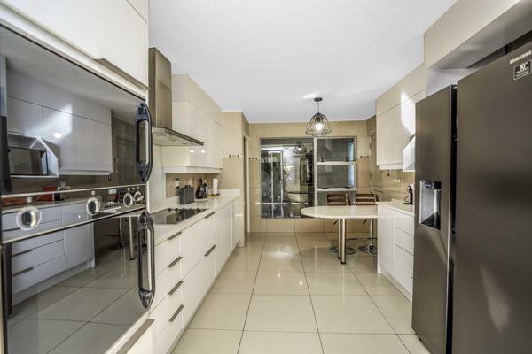 Downstairs, the gourmet kitchen boasts granite countertops, a scullery, and ample cupboards, flowing seamlessly into expansive open-plan living areas. Entertain with ease on the patio, relax by your private swimming pool, and enjoy the beautifully manicured gardens. Luxury extras include underfloor heating, window shutters, and a powerful 25kV generator.