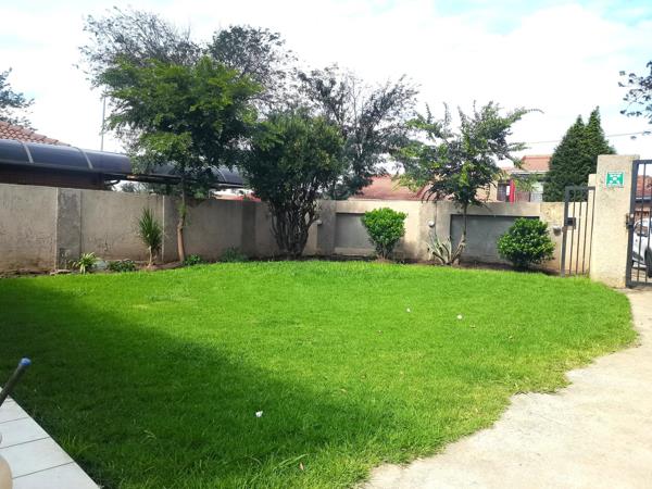 Neat 2-bedroom house with lounge, dining, full kitchen and bathroom. Single garage plus extra parking. Safe, quiet area with JoJo tank, prepaid power and water. Near Modjadji Rd, transport, 800m Maponya Mall, 1km UJ Soweto & Bara.