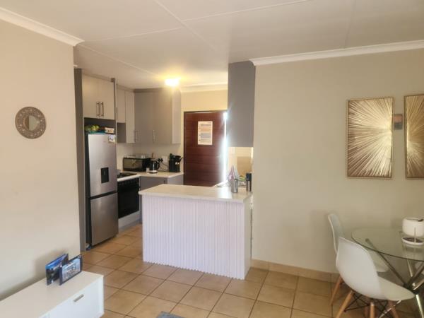 The heart of the home is a modern open-plan lounge that flows directly into a beautifully fitted kitchen, creating a perfect space for relaxing or hosting guests. Safety and privacy are prioritized, as the entire property is fully walled.