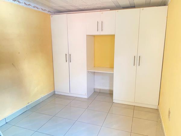 A back room with own living room and kitchen. All room are well tiled and has ceiling.It has a bedroom with fitted built in wardrobe and a kitchen with a stove. The property is best suited for a small family, a couple or one person.