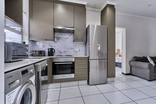 The open-plan kitchen and living area create a bright and airy space which flows out to a private balcony, ideal for both relaxing and entertaining. Being on the top floor, the unit enjoys added privacy and great natural light.