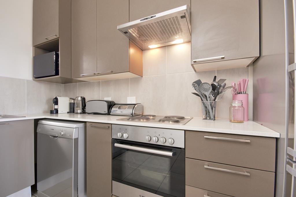 Spacious and modern kitchen with Caesar Stone counter tops, comes fitted with fridge, washing machine and dish washer.There are also fitted blinds in the kitchen and bathrooms. The 3 bright bedrooms have built in cupboards and are spacious. The main has an en-suite bathroom with shower, while the family bathroom is a full bathroom with a tub and shower.