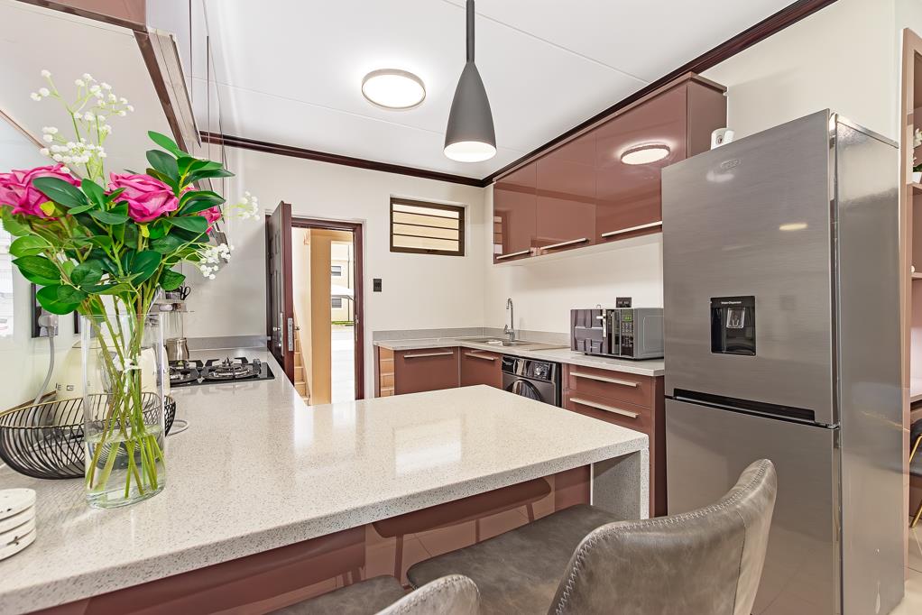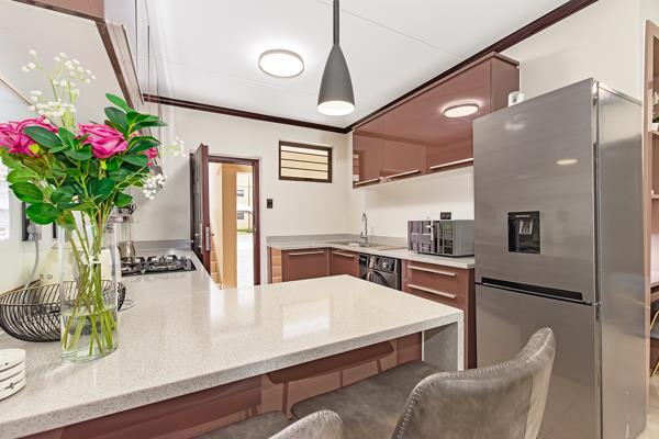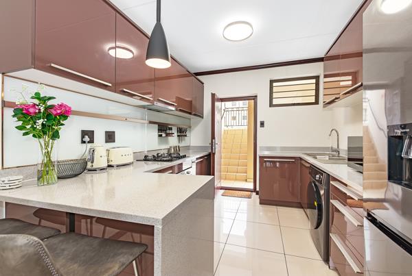 Fully equipped kitchen, boasting glossy finishes, a stylish breakfast nook & all the bells and whistles