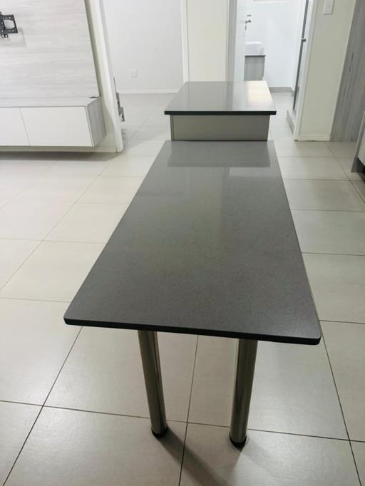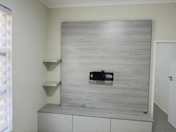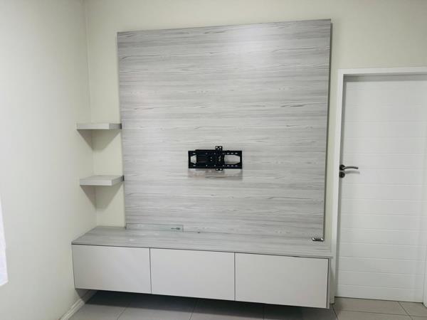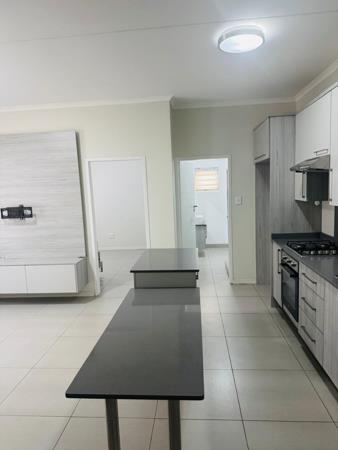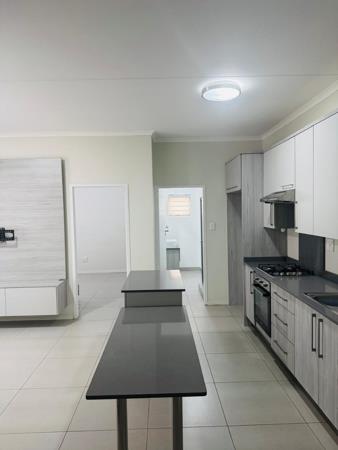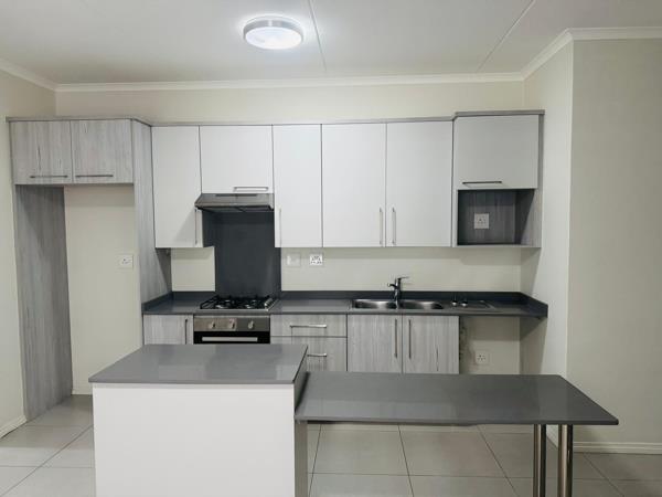 Discover contemporary living in this stylish 1-bedroom, 1-bathroom apartment located within a modern complex in Carlswald, Midrand. Designed for comfort and convenience, this residence boasts an open-plan layout that seamlessly integrates the living area with a state-of-the-art kitchen. The kitchen is a highlight, featuring sleek two-tone cabinetry, dark countertops, an integrated gas hob, under-counter oven, and a double sink. A spacious breakfast barkitchen island provides additional prep space and a casual dining option, complemented by a dedicated refrigerator space.