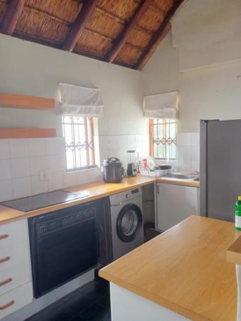 The cottage provides a comfortable and well-designed living experience. The open-plan lounge, dining area, and kitchen create an inviting atmosphere, and the private patio leads into an enclosed garden area. The property includes a washing machine, uncapped internet at no extra charge, and shared use of a swimming pool and poolside braai area. Security features include an electric fenced perimeter, night security, and twenty-four-hour camera monitoring. The lease is offered on a month-to-month basis. Viewings are by appointment only.