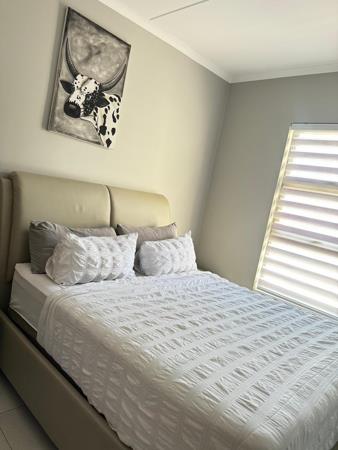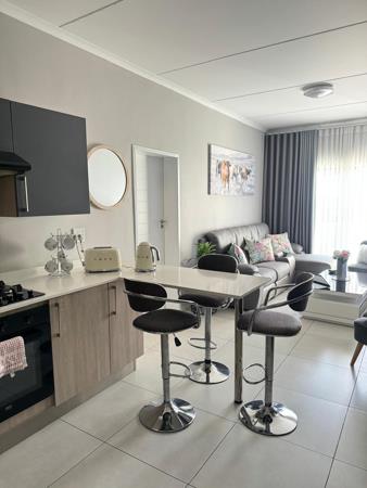Stunning two-bedroom fully furnished modern apartment in a well-secured complex in Midrand, Carlswald. The apartment features 2 bedrooms, 2 bathrooms with a fully equipped kitchen, a microwave, fridge, and washing machine. A flat-screen TV. The main bedroom features ample built-in cupboard space and a bathtub. This apartment offers a perfect blend of comfort, security, and modern living.