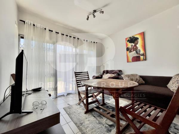 The two spacious bedrooms are fully furnished with quality pieces, offering ample cupboard space and natural light. The well-appointed bathroom includes a modern shower, providing practical comfort and convenience.