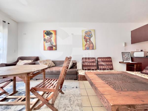 This thoughtfully furnished apartment features a welcoming open-plan living and dining area designed for both relaxation and functionality. The space flows effortlessly, creating a warm and inviting atmosphere ideal for everyday living or entertaining guests.