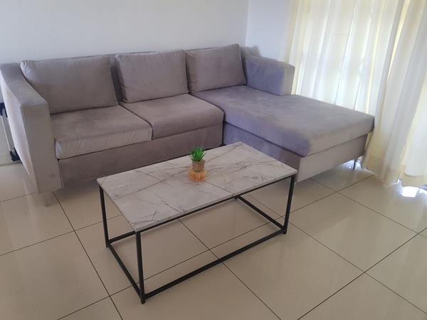 L shaped lounge suite and coffee table, just bring your tv and tv stand.