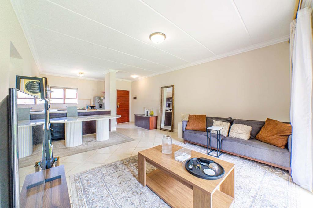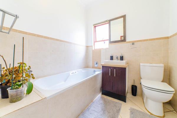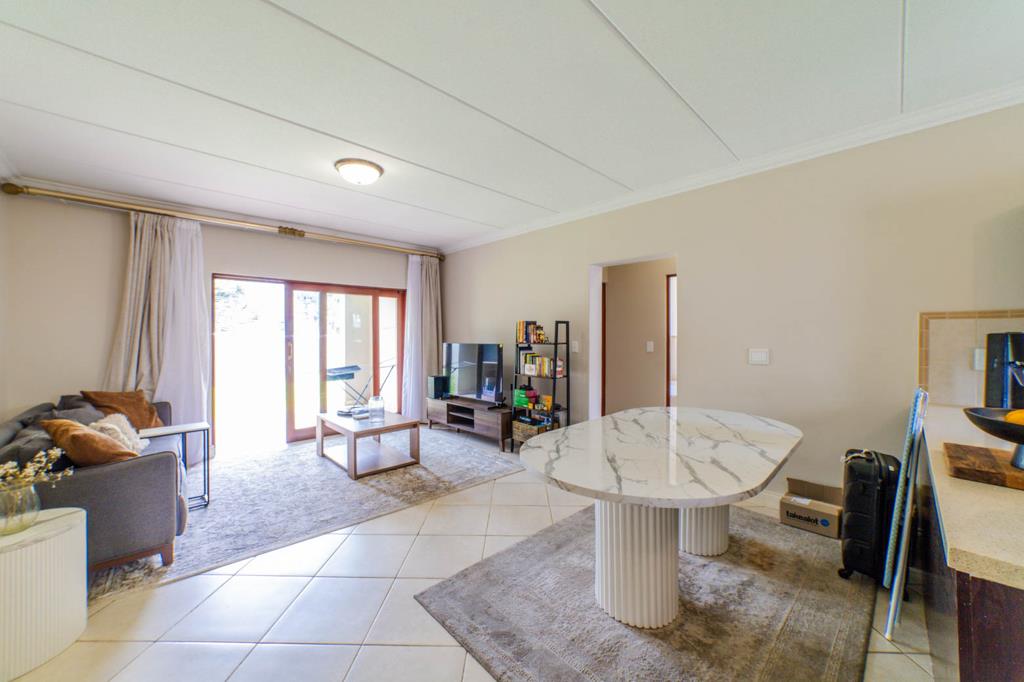 The spacious living area seamlessly integrates the lounge and dining spaces, ensuring a versatile and airy atmosphere. Natural light floods the room, enhancing the sense of space and comfort. A sliding door beckons you to a charming patio, complete with a built-in braai. Whether you''re grilling up a feast or sipping morning coffee, this outdoor haven promises memorable moments in the fresh air.