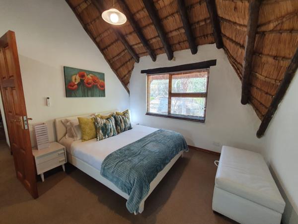 Set in a beautiful country setting this very safe and gorgeous apartment boasts 2 x balconies with a braai and stunning views. A large kitchen with a seating area, a bar and dining table/pool table, a large lounge, a very large bedroom with seating area & a walk-in closet next to it. A large office & WIFI ideal for working from home and one bathroom and air conditioning throughout. A double carport and adjacent garden with Donkeys on the property finishes off this style of living. This would suit corporates wanting to entertain or a Professional person or couple looking for peaceful and beautiful surroundings.