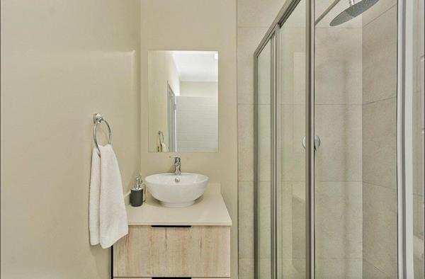 Two spacious bedrooms with built-in cupboards, two modern bathrooms including a main en-suite.