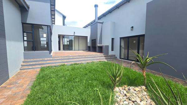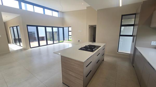 Discover this brand new modern home in this newly built Fountainbrook Estate, perfectly situated next to Midstream Estates. This contemporary residence boasts a spacious 230 sqm floor plan, featuring an open-plan design that seamlessly integrates the lounge, dining area, and kitchen, all illuminated by abundant natural light from large windows and high ceilings. The heart of the home is its sleek kitchen, equipped with an island, both gas and induction hobs, an integrated oven, and ample storage within its light-toned cabinetry. A dedicated sculleryutility room with a double basin adds to the home''s functionality.