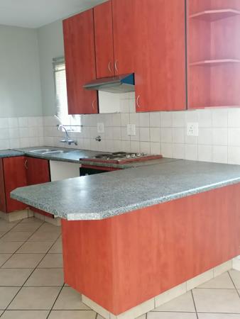 Kitchen is big and enough cupboard space. Stove is fitted. Space for a fridge, dish washer.