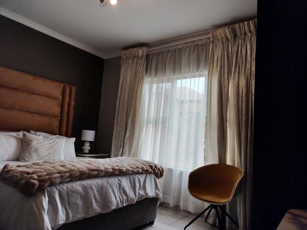 The complex has 24 hours access security control with perimeter wall and electric fence is manned by 2 security guards per shift, has easy access to major routes, it''s 5 minutes drive to New Road on/off ramp, Sanridge Square Shopping Centre,Carlswald DecorCentre, Carlswald Lifestyle Shopping Centre, Builders Warehouse, a walking distance to McDonalds, Gautrain Bus Stop and taxi routes. There are private and public schools around, car washes, car dealerships(agencies), restaurants, medical suites, hair and beauty salons. The suburb is quiet and offers serenity in the middle of the city.