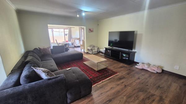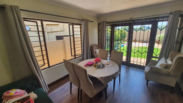 - Open plan lounge that will accommodate any sized lounge suite with entertainment setup. Lounge flows into dining room that will accommodate any sized dining table and opens out onto the lush garden and swimming pool.